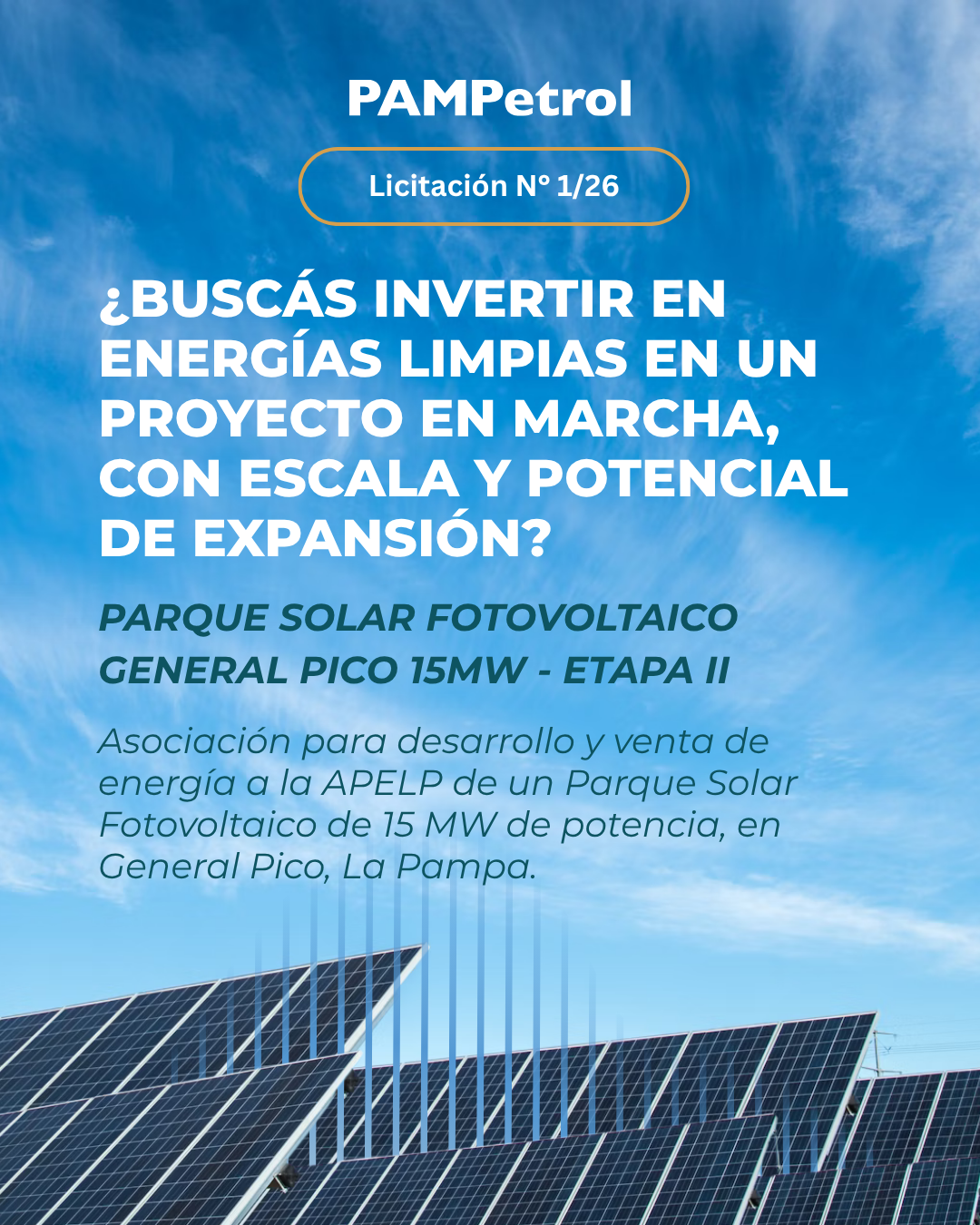 La empresa que resulte adjudicataria de la licitación deberá construir y entregar a PAMPETROL llave en mano, una planta de generación de energía eléctrica a partir de fuentes renovables.022